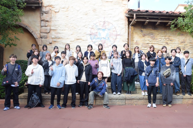 ディズニーシーに到着して、新入職員のみんなで写真を撮り、