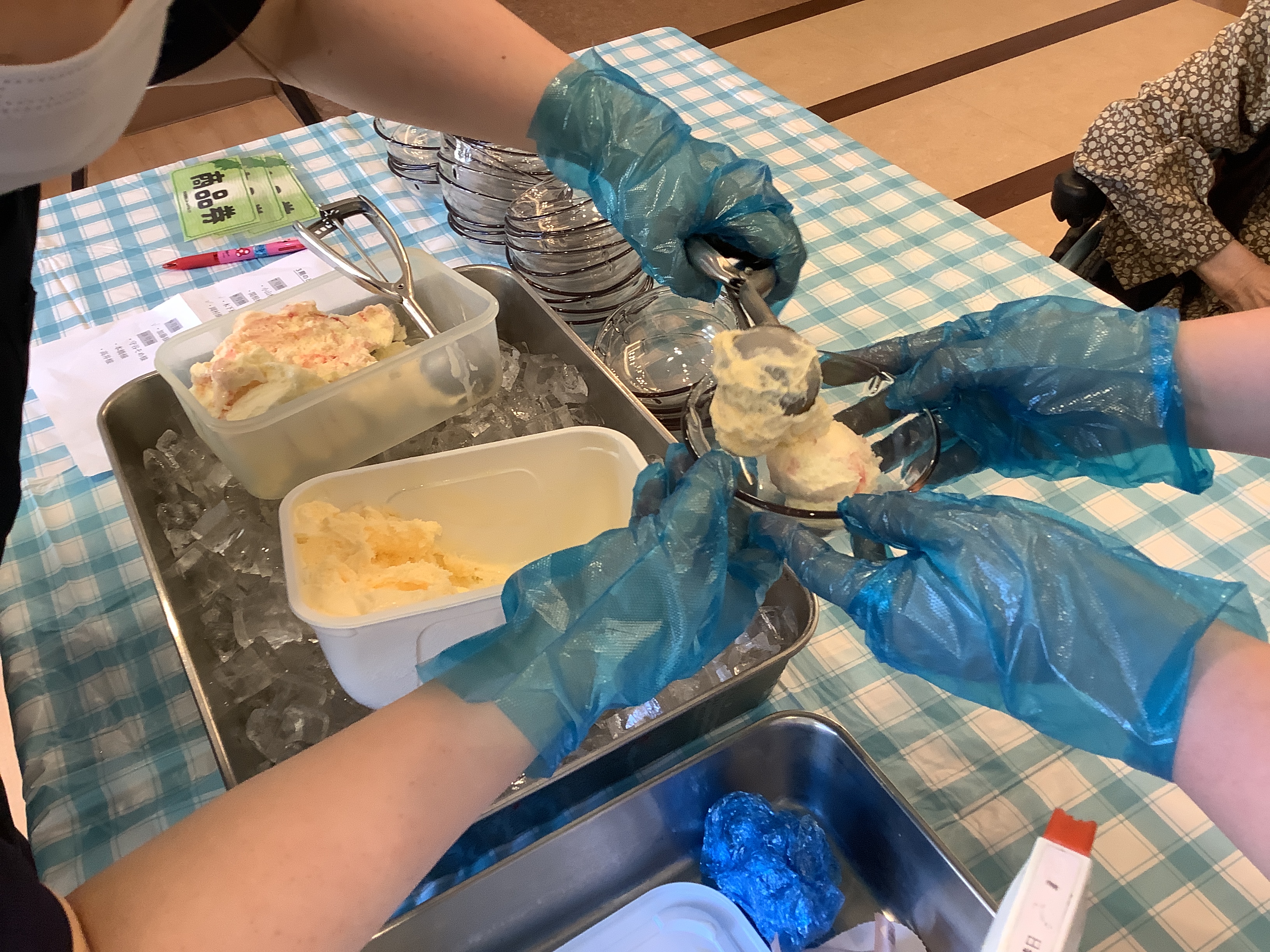 9月もまだまだ暑い日が続いておりましたので、アイスクリーム販売レクを行いました!