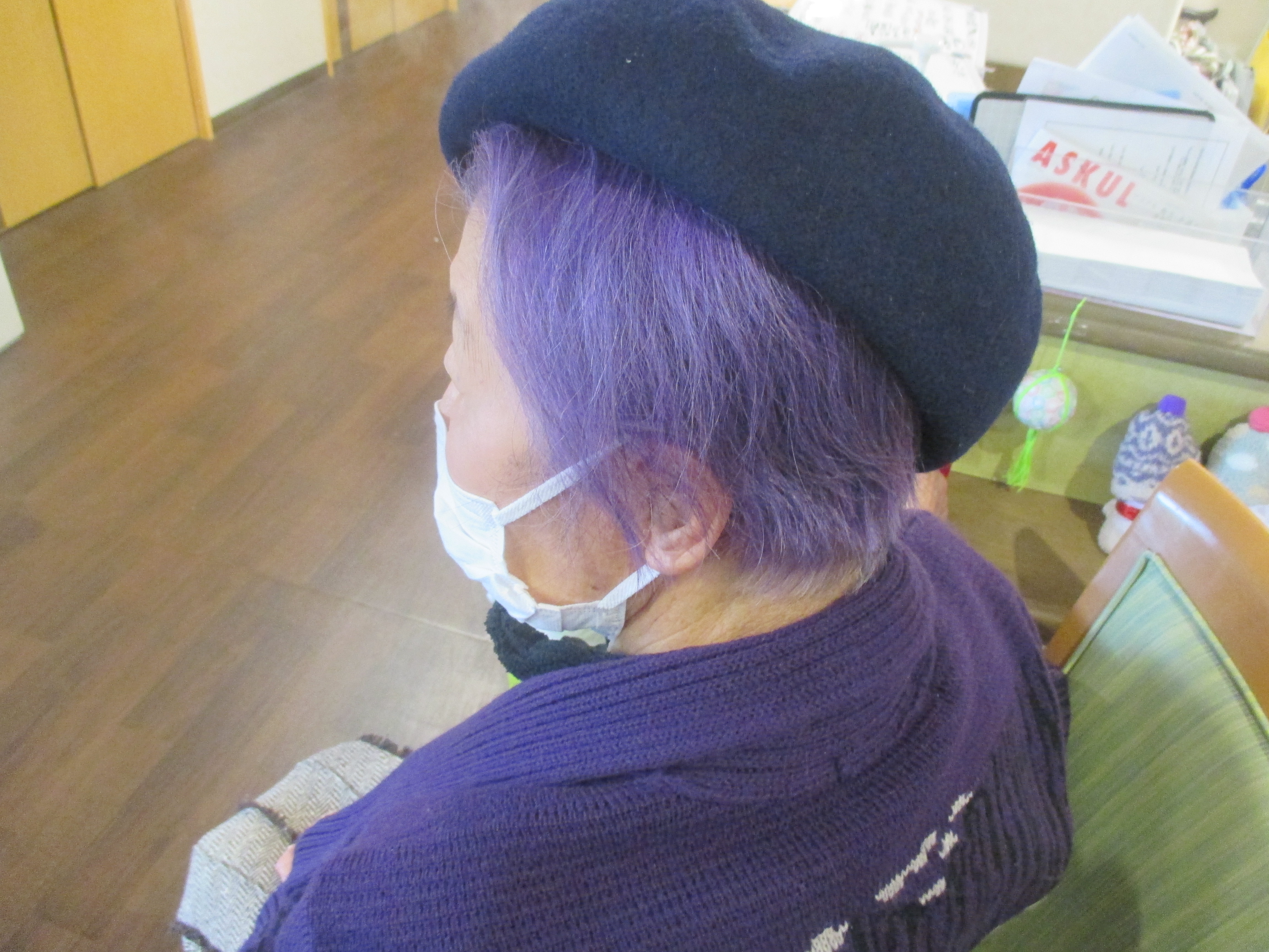 毎回おしゃれなお召し物で来館されるのですが、髪のカラーとも合っていて素敵でした😊